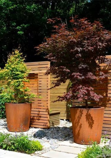 Siūlome atrinktą lauko elementų kolekciją – metalinius vazonus, laužavietes ir kitus dizaino akcentus, kurie lengvai integruojami į jau suformuotą kiemą.